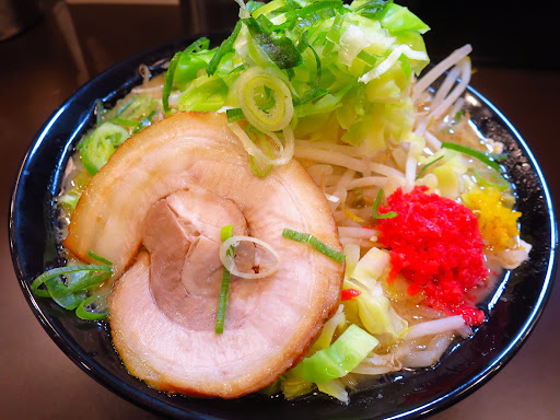 Modern spot right near the station exit. Order from a ticket machine(has some English). They have free condiments (pepper, sesame seeds, chili🌶️ paste, and garlic 🧄). 7 counter seats and a unisex bathroom. The black ramen 🍜 seems to be popular. Super affordable with a decent portion size.