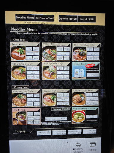 Luckily, their machine had an English option, so I got the Jyan Soba! Also, this is the first time I've seen panchetta on a menu in Japan, so I definitely had to try that.