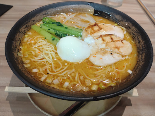 Read moreサクラス戸塚店の地下にあり、建物の構造上なのか天井が高く、店員さんがニコニコして対応してくれるそんなお店で、鶏そばの醤油味と味玉、餃子を注文してみました。 少々脂っぽいもののスッキリとこってりという相反する味を併せ持つ個性的な醤油スープに、平凡なちぢれ麺と味玉という組み合わせの鶏そばから興味深くいただきました。