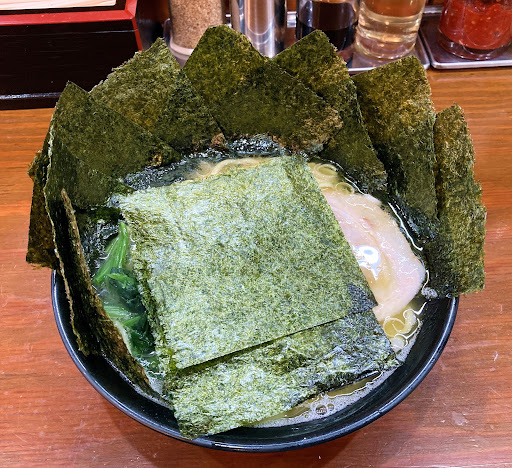 海苔増しは5枚。 少し緑色っぽい海苔は目が細かめ。 スープに浸してもそこそこ強さがあります。 磯の香りが強めで風味はなかなか良かったです。