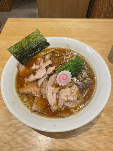 Read more周辺は比較的規模の大きい商業施設に囲まれている、ポツンと一軒家のように佇むラーメン店です。内装は勿論外装も主に明るめの色の木材で構成されており、またレストランのシンボルマークも大きく掲げられているため見つけやすいです。 外観から分かる通り小ぢんまりとしたお店で、席数は30席程。しかも店内にはいくつか柱があり、少し狭苦しい印象を与えます。友人等の複数人で利用する際は、店内での待ち合わせはあまりお勧めできません。また、前述の通り店内は狭く、出入り口には段差もあることから、車椅子等の障碍を持つ方の利用もお勧めできません。 入口を入ってすぐのところに設置されている券売機で予め食券を購入する必要があります。醬油ベースもしくは塩ベースのラーメン、他につけ麺があり、特にラーメンはすっきりした味わいでするすると食べることが出来ます。ただし、生姜の味が比較的強く、食べ勧めるにつれてその強さが濃くなるように感じました。スープを最後まで堪能する方は注意が必要だと思います。なお、水は店内に設置されている給水機を使用するセルフサービスになっています。