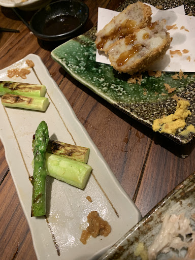 I love the chicken meatballs and grilled asparagus. The grilled mackerel is so delicious and a favorite of all of the guests I bring here.