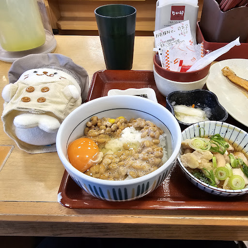 Went to get the breakfast. Very fast and cheap. Added extra salmon and chicken removed some rice and it came to 660 yen. Good warm meal, miso had strong flavour. The Natto didn't have much flavour but the texture was fun to play with. Quick fast food, as soon as I day down and the staff member came to get my ticket 1 minute later she came back with did and...