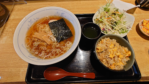 Read moreお昼遅めに訪問しました。人は少ないもののピーク時の混みようが感じられました。席には荷物置きのかごがあるので荷物が多くても安心です。 今回はBセット(ラーメン・半チャーハン・サラダ)を注文しました。周りの方はだいたいランチを注文しているようです。 ラーメンは澄んだ醤油スープでほのかにしょうがを感じます。具は海苔、メンマ、ネギ、チャーシュー、麺は細めで少し縮れています。味は普通。特徴を消している感じすらします。メニューにサンマーメンやうま煮そばがあるのでそちらに合わせているのかもしれません。差額プラスでラーメンを変えられるので次は確認してみたいです。 チャーハンはしっとりパラ系。具はコーン、玉子、薄切りのシイタケ、細かく刻んだチャーシュー? 少し焦がしてあり、味がしっかりしています。駅周辺では一番...