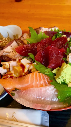 Read more駐車場店前に2台分と2つ左隣の駐車場に4台分。手前から斜めに停められるところ4台分です。店舗前はお店の車が停まってること多いてです。このあたりで駐車場付きのランチスポットはありがたい。ランチメニューは色々ありますが、コスパを考えれば日替わり丼一択です。頼んだことないですが、海鮮丼となにが違うのか気になります。ネタが違うだけでほぼ一緒だと思ってます。ごはん大盛りが無料なので男の人は大盛りにしましょう。たぶんちょうど良くなります。口コミの写真だと大きく見えますが、実際見るとイメージより一回り小さく感じます。ランチにはみそ汁と小鉢が2つ付くので普通盛りでも十分満足できると思いますが、食べ盛りのサラリーマンは大盛りで大丈夫です。もりもりの海鮮丼ってどう食べれば良いかいつも悩みますが、大盛り分のご飯が別の茶碗で出てくるので取り皿兼用に出来ます。ミニ海鮮丼作れます。丼は寿司桶ではなくお椀型です。ネタは都度切り落とし盛り付けなので手間がかかってます。みそ汁はちょっとぬるい。小鉢は優しい味付けで母の味です。お茶は熱いですと出てきますが普通の熱さです。 店員さんみんな元気で優しい。細かい気遣いがあり居心地のいいお店です。 口頭注文、後会計。支払いは現金のみ。 店内にテレビあり。トイレは利用しませんでしたが、外から見るからに中もキレイそう。 平日金曜の12:30に伺いましたが2客のみ。...