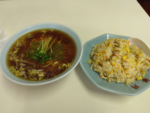 土曜のランチで住処から徒歩で来店しました。 13時半過ぎで先客は2名です。ラーメンとチャーハンのセット(650円)を注文しました。 壁に目をやりメニューを見るとどれもお安いですね。 ラーメンはこのご時世でなんと350円!安っー! 厨房からはリズミカルな鍋振りの音が聞こえます。 先ずはチャーハンの登場です。 デーンとフルサイズのチャーハン!続けてラーメン! これもフルサイズ!食べ切れるかな?と少々不安になりましたが、とてもお腹が空いていたので、イケそうな予感。先ずはラーメンのスープを一口・・・ あっさりした醤油ラーメンです。具材はシンプルですが、なかなか美味しいです。次はチャーハンですが、味付けはあっさりしていますが、油はきっちり使ってあってコクがありますね。チャーハンを頬張り、ラーメンを啜り、スープを頂く・・・ 汗だくになりながら、一気に完食しました。 ちなみにエアコンはなく(壁にはありましたが、壊れているのかな?)扇風機と扉系全開による自然送風だけなので、店内は暑かったです。 お母さんお一人のワンオペなので、ランチタイムは結構混雑しているのかな?と思いました。 このご時世、チャーハン、ラーメンを個々で頂いても650円で食べれる店は少ないのに、セットで650円なんて破格も良いとこです! お母さんの頑張りで実現しているお値段なのでしょう。過去の口コミを見ると、随分長い間値上げをされていないことが分かりますね。 素直に「素晴らしいお店だ。」と思いました。 次回は量が多いので、半チャーハンと餃子かな?(^-^) 今日は食べ過ぎてお腹が破裂しそう。(-_-;) 2024年9月