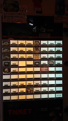 店内はカウンター席が6席と2人がけのテーブル席が3卓あります。入り口入ってすぐ右の券売機で食券を購入して着席します。お冷はセルフになります。