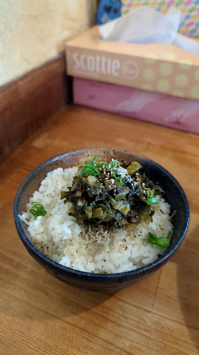 【ツナマヨごはん】 あまり期待していなかったが、ツナマヨのごはんそのものが美味しい♪ラーメンのスープとの愛称もよく、あっという間に完食していた。 別の客がTKG{たまごかけごはん}という名で注文して食べていた。食べる前に店主から客自体がゴマかかけるため??の擦る?砕く?作業を促していた。更に卵の白身を分ける作業??もあった。初見らしき客は少し困っていた。作業そのものが簡単ならいいが、地味に手間がかかっているのでワンオペとはいえ簡略化したほうがいいのではと感じた。