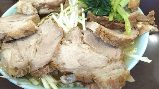 そのかわり、 チャーシューの量がえげつないほど多く、人生で初めてラーメンを残してしまう感に苛まれました。 ジップロックがあったなら、店主の目を盗んで確実に持ち帰ったはずです。 2cm厚に切った肉の塊が5つほど入っていました。肉だけで300gはあったのではないでしょうか?チャーシューでお腹いっぱいになる感覚を初めて味わいました。 チャーシューにほとんど味はなく、スープに浸しながら食べないと、あの肉の塊を食べ切るのは至難の業です。 少食の人は、チャーシュー麺を注文しないか、こっそり持ち帰るようにジップロックをこっそり持って行くかした方がいいかもしれません。 それと、二郎や、家系に慣れてしまっているラーメンフリークの皆さんは、味が薄く感じると思いますので、濃いめを注文されるといいかもしれません。