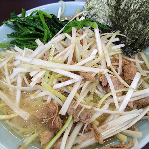 Read more「来ちゃった♥」 そんな感じで訪問しました❗ 2024.04.17の開店前から並びで訪問。 いや、実際のところ駐車場にも停めたかったので9時34分に現地に到着。流石に1番乗りでした。 1順目で食べられればいいやと思っていたので10時20分に車から降りて並びへ。 4番目でした❗初訪問で店ルールが分からなかったのでヨシっ❗ 先頭は店舗向かって右側が先頭になります。店内の冷水機前辺りです。開店時並びは15くらいだったかな、、、人気店ですね。 11時きっちりに引き戸が開きます。先頭の方から冷水機で水をくんでV時カウンターの左奥(帰りの出口でトイレじゃ無い方です。)から順番に着席。 着席後にご主人から注文を聞かれるので口頭で注文。好みもこの時に伝えます。Tシャツもこの時に言っておくと用意しておいてくれます。僕は食後の会計時に奥様にお願いして購入しました。今日から再販だったので結構な方が購入されてました。欲しい方はお早めに❗ 開店で15❔人位は着席出来ますが1順目は約半分。2順目で残りのお客さん。って感じです。 注文はいつもの ネギラーメン(今日は)全部普通で。でお願いしました。二ツ橋店さんはチャーシューの多さが有名なので チャーシュー麺 ネギチャーシュー麺も迷いましたがクチコミの写真見てたらかなり多かったので断念しました。 ネギラーメンはラーショ味は優しめで塩っ気が強かったです❗ ラーショ家系的な感じで想像出来るかな、、、いつものラーショとは違いましたが凄く美味しかったです❗和えネギに混ざってるチャーシューもゴロゴロで十分堪能出来ますよ❗ 隣のお客さんが味噌ネギチャーシュー❔注文してましたが、着丼に僕がビックリ❗マジか、、、と思いました💦