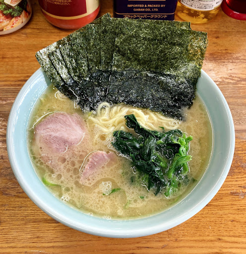 Read more横浜ロジスティックの中核を担う本牧埠頭。 その近くマリンハイツという団地建物の一階。 港湾関係やトラック運転手御用達。 横浜朝ラーで人気の豚骨醤油のラーメン店。 本店はは同地区の門間で、六浦にも支店だけど朝ラーはここだけ。 朝6:30オープンよりお客で賑わってます。 それに対応する店員さんも複数人。 券売機は団地建物中廊下に有り、車道から入店すると店内をスルーする感じ。 お店のスタッフさんが案内してくれます。 キムチラーメン(800円)を注文。 お好みはすべてふつう。 店内は結構キャパ大きく、厨房を囲いコノ字カウンター17席くらいにテーブル席が24席以上ありそう。 日本の貿易を支えるガテン系労働者の朝飯。 ラーメン➕ライスの客が多いかな。 カウンター越しに提供されたラーメンは、少々ちいさめの丼。 ビジュアルは家系だけど麺は太麺ではなく中ストレート。 スープは表面は澄んでいて鶏油ラードのコーティングか、その下に豚骨濁が見える。 このスープが一見くどそうだが、実はさっぱり。それでも豚骨はしっかり感じて醤油も主張しないけど存在感はある。 ライトなスープだけど美味しいし、朝はこのくらいの軽いのがいいかな。 トッピングのキムチはまあご飯に合いそうだけど、いい食感でアクセントにはなるのかな。 労働者が朝からガッツリ食って仕事に向か...