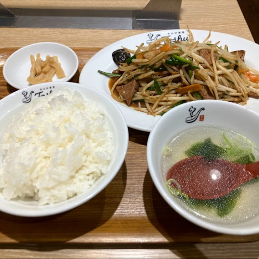 満腹、満腹、大満足! 接客も気持ち良く、店内もとてもキレイでした。 初めて利用。一人でもカウンター席が結構あるので、座れました。 注文は、タブレットで商品をタッチして、商品を確定して、注文送信をタッチみたいな、注文を終えるまで何回かタッチが必要。自分が注文を送信しているかどうか、画面のスミズミまで確認をした方が良いタイプ。自分が注文して待っていても、注文送信されていないとか普通にありそう。 水は、注文タブレット横にプラスチックのコップあり。テーブルの醤油などが置いてある横に銀のポットがあり、それに水が入ってる。 初め、この銀のポット、つけ麺屋だとスープ割りのダシ汁が入っているので、そのダシ汁かと思った。ちょうど、期間限定の商品が煮干しスープのつけ麺だったから、余計にそう思った。コップに注ぐ時に恐る恐る、これ水だよねって心に言い聞かせて注ぎましたよ。水で良かった。 鶏唐あい盛り定食(税込:803円)+餃子3個(セット割り?税込:187円)=990円。 普通のカラ揚げ(計2個)、甘いタレとタルタルソースがかかったカラ揚げ(計2個)、中華の塩スープ、黄色いたくあん、ご飯(大盛り+77円。少なめ-55円。)が、あい盛り定食。 やっぱり、揚げたてのカラ揚げはウマい。外カリカリ、中ジューシー。 たくあんも良い、これだけでご飯一杯イケル。このしよっぱさが暑さに良い。ザーサイでは無いのが日本的だよね。 餃子の中身は少なすぎず、多すぎず、適量です。機械で作ってるかな? こういうのも満足です。 近く...