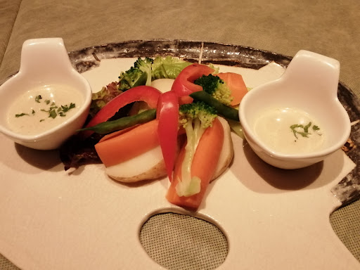 食事は魚か肉、メインを選ぶコース約5000円を頼んでいました。都内並のお値段で飲み物もやや高めでしたが、料理もワインもどれも美味しく、見た目も楽しめました。最初にバーニャカウダ、前菜盛り合わせ、メイン、パン、パスタ二種、スイーツ、ドリンク。とくにパスタが絶品でカニメインのものと、もう一品なんとも言えない味で、んー美味し~と言いながらいただきました。あまりに美味しすぎて写真忘れました。枝豆入りのパンも自家製だと思います。 最後のコーヒーをいただいたときはすっかりほろ酔い気分、緊張がほぐれていました。大事な食事会、美味しいお料理を提供くださったお店と、選んだ息子に感謝しながらサービスのホワイトチーズをいただきました。今度はママ友とランチで利用したいと思います。あざみ野の少し郊外にあるワンランク...
