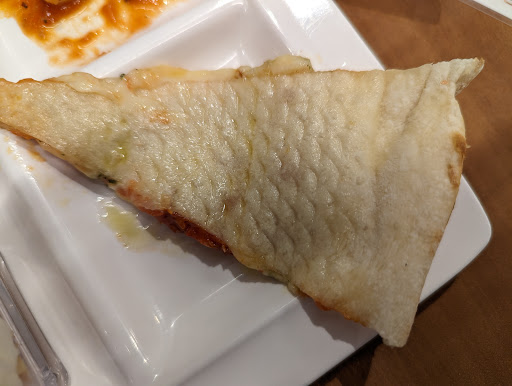 They have a pizza chef putting on a show behind the display glass, stretching the dough, pouring out the sauce, etc. Grabbed a slice just as it came out of the oven. It was, much like how I felt after this meal, soggy and pale.