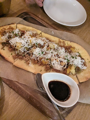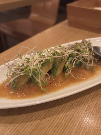 Read moreI had a lovely evening meal here, friendly staff! I ordered two cocktails, a starter salad, a hot appetiser, and half of one of their rice flour pizzas. The avocado miso yuzu salad was amazing, and the portion was great (I had eaten a quarter of it before I realised I hadnt taken a photo, easily sharable for two. The mushrooms came in a lovely small iron skillet and again were moreish and sharable between two to four people as a starter. The rice flour pizzas had a very pleasant vegan cheese! Both the cocktails I ordered may have been seasonal but were delicious, and the ice they use is crystal clear. They have a corner booth with a round table and two chairs here so you could probably bring a group of 6 if you reserve? The other tables could easily be brought together if you needed more space, but definitely call ahead for groups.