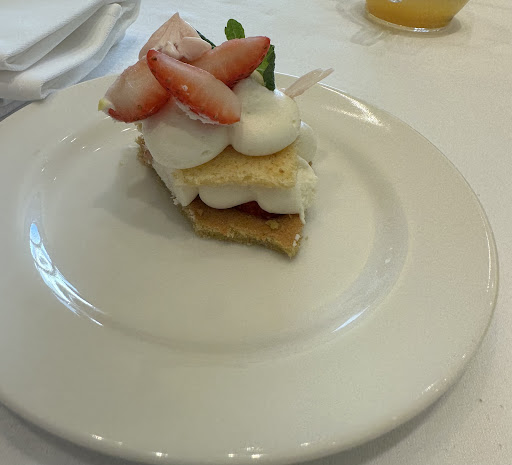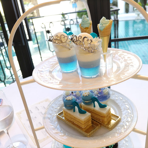 最後に③ 予約当日。少し分かりづらい場所でしたが、表通りから店舗敷地内へ入ると、守衛さんが「アフタヌーンティーの御利用ですか?」と声掛けがあり、名前を伝えると奥のエントランスへ、そこからは女性スタッフ様が対応。名前を確認するとロビーのソファーで待つよう言われ、定刻になるとレストランへ続くエレベーターに案内されました。3階まで移動し、エレベーターを降りて廊下を進むと、別の女性スタッフ様がお出迎え、屋上スペースに広がる水辺を沿ってレストランへ誘導され、窓際の特等席へ案内されました。着席し料理の説明などを受けて、次から次へと準備が進むと、穏やかな表情で女性スタッフ様が「写真を撮りましょうか?」と言って下さり、窓の外に広がる水辺をバックに写真撮影。その後の食事中もスマートな対応。オーダーした紅茶が無くなる頃にタイミングよく声掛けされるので、こちらからスタッフ様を呼んだのはチェックの時のみ。