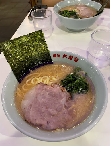 [感想] 新横浜駅 ラーメン博物館内にある家系ラーメン店。 かつて吉村家、本牧家と並ぶ家系御三家と呼ばれた人気店。 吉村実氏の弟子だった神藤氏が1988年に作った。 東白楽が本店で1994~2003年の間ラーメン博物館にも出店していた。 他にも多数の店舗があったが次々閉店して2017年には本店も閉店し戸塚にのみ店舗が残っていた。 この度ラーメン博物館に復活。 戸塚の六角家と浜松市の蔵前家が一緒に運営しているとのこと。 六角家は初めて食べた家系ラーメンなのと大鳥居時代に羽田店でよく食べたので思い入れがある。 戸塚店も最近駅前のトツカーナに移転した。 一双からの連食。