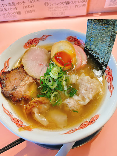 요코하마시 요시노초역 근처에 위치한 류세이켄입니다. 블루라인 요시노초 역에서 가장 가깝고 저는 게이큐 본선을 타고 와서 고가네초 역에서 걸어왔습니다. 기본적으로 메뉴가 상당히 많습니다. 1번부터 17번까지 읽는 것만으로도 시간이 꽤 걸리네요. 가장 시그니처가 1번이지 않을까 해서 그냥 1번으로 요청드렸습니다. 훈제 쇼유 정도라 할 수 있겠네요. 사장님께서 유튜브를 하시는지 구독하시면 달걀 서비스를 받을 수 있는 듯합니다. 가게의 별 모양 간판부터 시작해 외관, 붉은 빛의 인테리어, 그리고 흘러나오는 올드 재팬 록까지 그 분위기가 상당히 특이하고 재밌는 곳이였습니다. 취향이 그대로 녹아있는 게 인상적이더라구요. 그렇게 라멘이 나옵니다. 그릇을 받쳐 돈부리를 위에 올리고 렌게와 젓가락을 밑에 꽂아 주는 스타일이 독특하네요. 개인적으론 처음 보는 스타일이였는데 라멘의 담음새를 가리지 않으면서도 깔끔하게 서브할 수 있는 괜찮은 방법인 것 같습니다. 라멘 맛은 약간 신맛이 강하게 돌더라구요. 가쓰오부시인가 싶었는데 정확히 뭔진 모르겠습니다. 이게 호불호를 좀 세게 가를 수 있을 만한 요소였는데, 저는 그렇게 선호하는 느낌은 아니였어요. 그래도 특이해 좋았다 싶었습니다. 면은 부드럽고 통통한 스타일이라 여기에 잘 어울리네요. 완탕이나 오리 차슈도 다 좋았습니다. 차슈 중 하나에 카레향이 나는 게 있었는데 그게 좀 독특하더라구요. 근데 전체적으로 훈제 쇼유라는 이름에 걸맞게 훈제 느낌이 있었나 하면 그건 잘 모르겠습니다. 여기까지 와서 드셔보시라 추천드리기는 좀 어렵지만 그래도 근처에 계시면 한번 가볼 만한 맛은 있습니다. 워낙 재밌으신 분인 것 같고 사모님으로 보이는 스태프 분도 무척 친절하셨어요. 좀 비싸다 느껴지는 건 흠입니다.