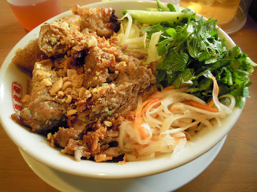 It's not all about Pho and Spring rolls when it comes to Vietnamese dishes. Try the Vermicelli dishes top with fried egg rolls, grilled chicken, or a combination of both and top it off with their signature sweet and spicy fish sauce. All serve with fresh leafy veggies and herbs. Also rice dish with fried spare ribs and an over hard fried egg on top is delicious. Ask for fresh chilies on the side. Ice coffee is great too.