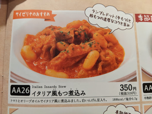 Japanified Italian-inspired family restaurant fare. Inexpensive and tasty, but don't expect too much. I always have to add Parmesan and hot sauce to everything I order, just like I do in every family restaurant here in Japan. If you're a strict vegetarian or vegan, there's probably very little on the menu you can eat. Service is good, but that's to be expected in this country. Occasionally there's some funny English...