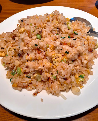 チャーハンは具材・味付けはシンプルで、パラッとシットリ系のチャーハンです。 写真料理はお皿が大きいので大盛り感弱めですが、一品で満足出来ます。