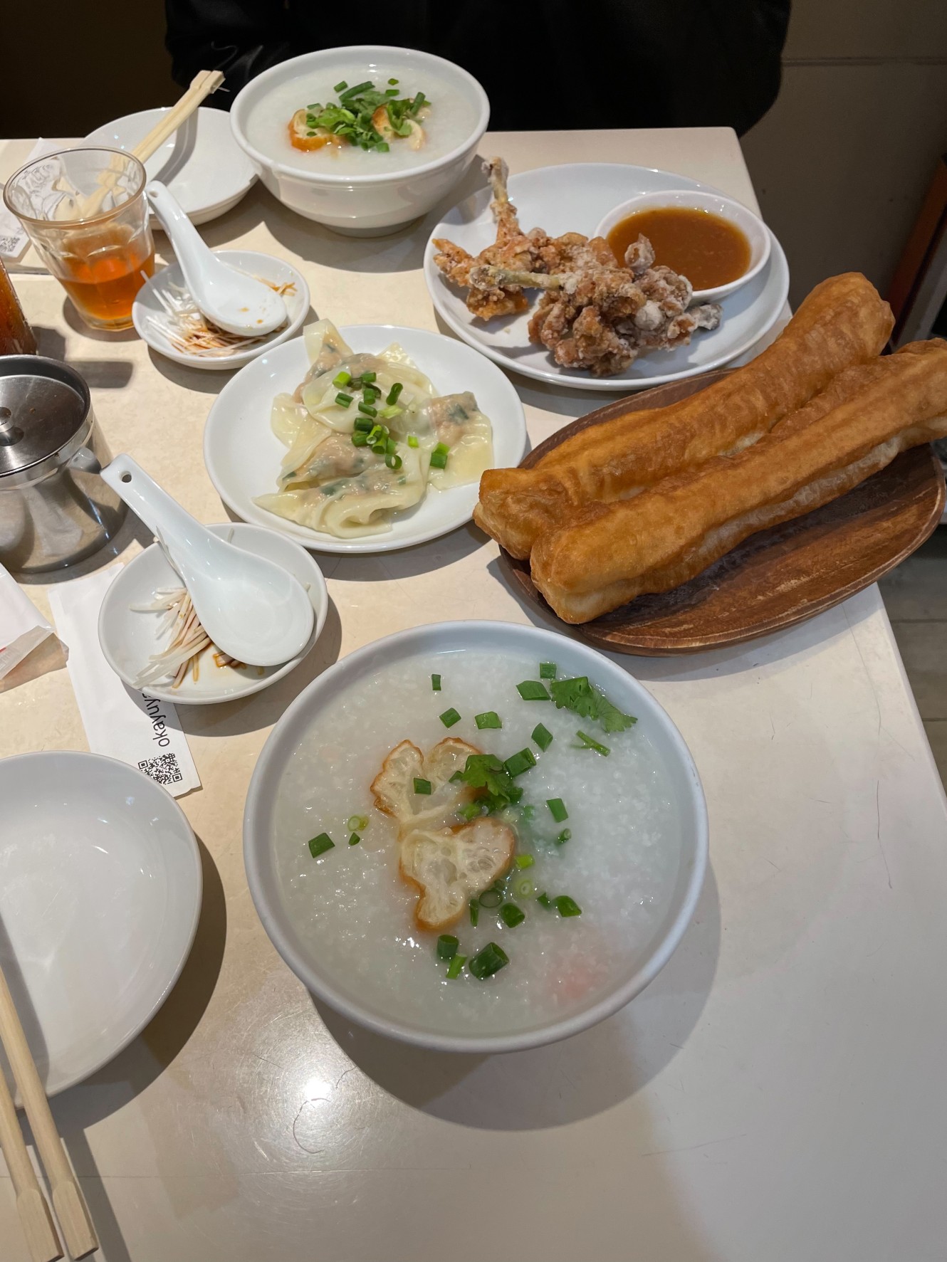 Let's start with the food. You can order the shrimp porridge set (you get shrimp porridge + fried chicken + pork bun) for 1500円 and you'll go home with a full and happy stomach. Add some dumplings and cakwe and you'll go home with a very full and very happy stomach. All the food feels freshly cooked and is seasoned to perfection. Everything I ate felt like the chef has mastered the dish.