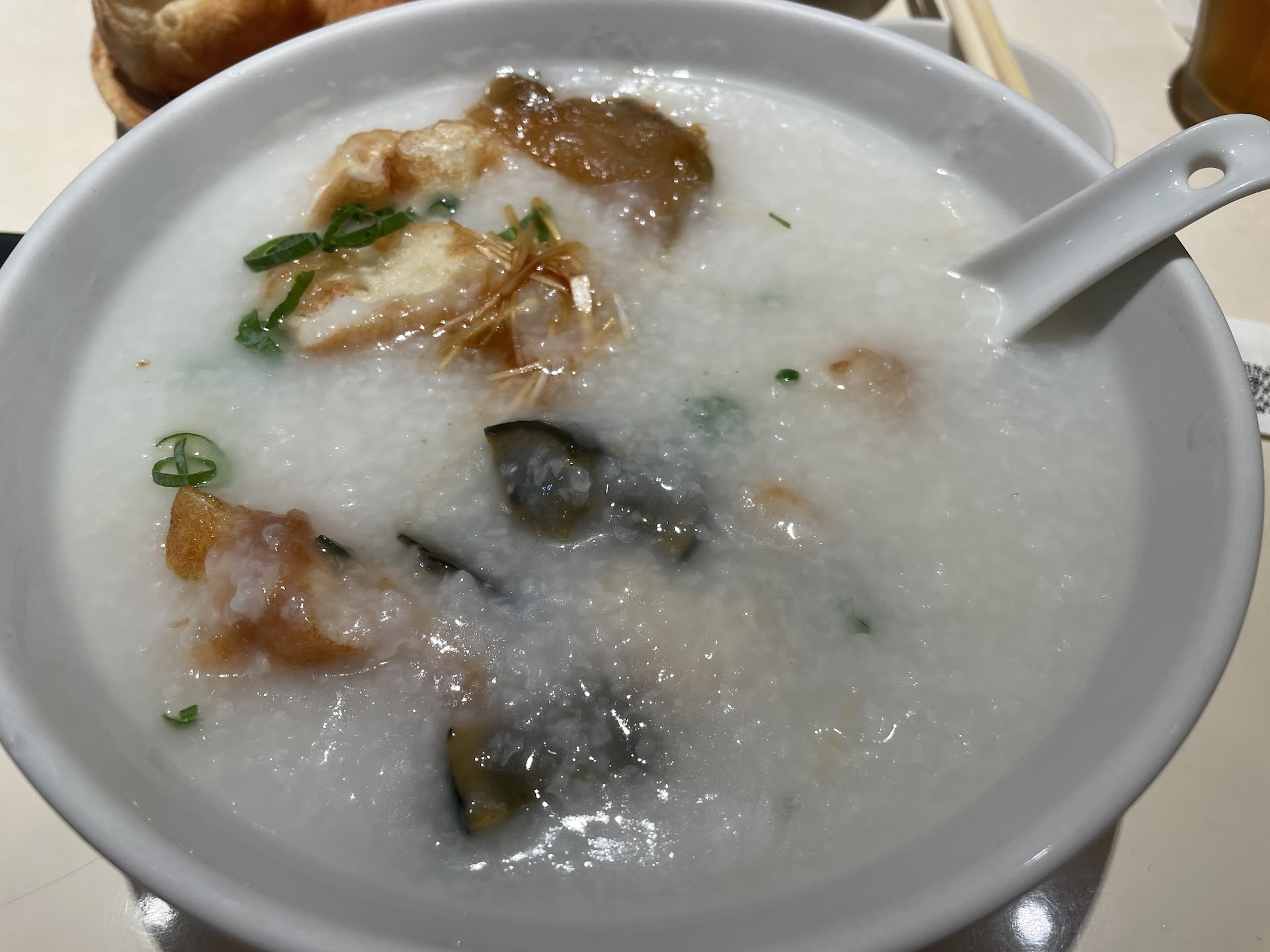 Anyway, we stayed because we were eager to try the food. We ordered a 1000yen worth of rice porridge each. So here it goes. The topping was nice and crunchy, but the rice porridge was.. nothing special. It tasted no different than the homemade ones in China and the Philippines. It was disappointing bowl for 1000yen. Although the other customers were ordering chicken which seemed to be a popular menu. Giving the benefit of the doubt, maybe those ones are good.