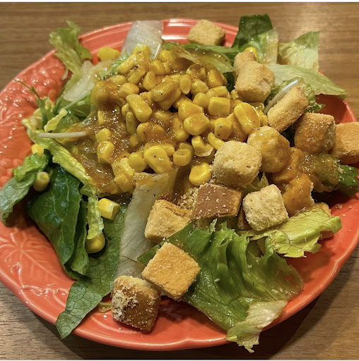 ロメインレタス、パリパリレタス、コーン、クルトン、和風ドレッシング。いつもこれだけしか食べませんが、これらが大好物すぎて、他店舗では味わうことのできないクオリティです。もちろん種類も豊富ですし、果物も充実しています。某有名レストランのビュッフェよりも美味しいです。