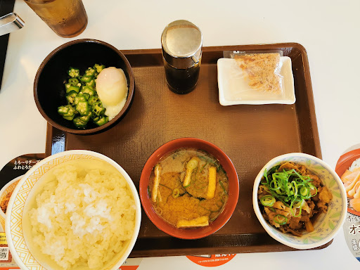 店員さんにバラツキがあって、結構外人さんの時もあった。カウンター席が少なく、一人利用の時にテーブル席使うのは気が引ける。 2018,6,4久々?のすき家だ! 新作メニューが出ていたので、早速シーザーレタス牛丼の並500円を注文した。お~、黒いデカイ器で運ばれてきた。器は、陶器製だ❗いつもの赤プラじゃないぞ‼️レタスが載って、シーザーソースが掛けられ、彩りも鮮やかに見える。殆んど牛丼が見えない状態だ❗凄くヘルシーな感じを受けるぞ⁉️ 食べてみると、レタス、シーザーソースとの組み合わせが絶妙で、少しピリッとする味付けが食欲をそそる❗まさしく夏メニューとしてピッタリの美味しさだ。 2018,6,7 今日は、うな牛にした。鰻と牛丼が890円で食べられるのは、良いですね❗ 2018,6,12 今日は、歯が痛いので、噛みやすい鉄火丼にしました。バラエティーに富んでるすき家ですね。