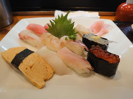 以前仕事で近くに来た時に前を通って、昼時に地元の方が徒歩で何人か入っていくのを見て「おっ、これは隠れた名店か?」と思っていたので本日平日に休みが取れましたのでお邪魔しました。お昼時はランチメニューらしく、店内はお客さんで賑わっていましたがすぐに案内してくれて1000円と1500円のメニューどちらにしますかと聞かれたので1500円のものを注文。回転寿司では無いので、若干待ちますがそれは当然。その場でネタケースからネタを出して握ってくれます。 前段階でサラダ、小鉢3品を出してくれてそれだけでかなり満足。ブリの卵?が美味しいのでオススメですと教えてくれて、一口放り込むとこれが絶品! 続けてシースー群が出てまいります。 圧巻です、1500円で回らないシースーが食べられるだけで御の字のところ、味が最強。 美味しすぎます。 百円寿司で1500円使うなら間違いなくこちらをオススメします。 店内、厨房もとてもきれいにされていて、職人さんたちも愛想も良くて最高で...
