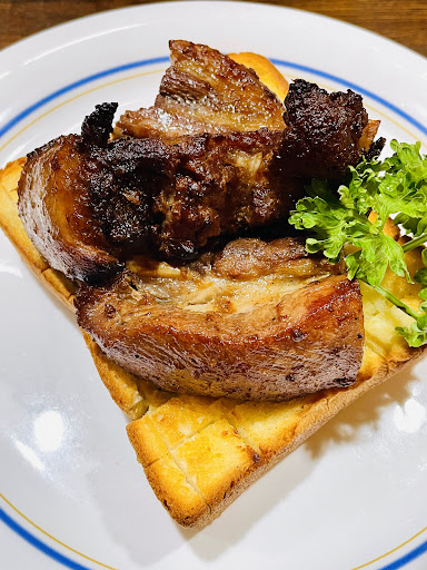 å°ãåãã®ã¬ãŒãªãã¯ããŒã¹ãã®äžã«ãã¹ãã¢ãªããä¹ã£ãæçïŒãã®æçãé£ã¹ã«è¡ããŸããïŒ ã¹ãã¢ãªãããã©ãŒã¯ã§åºããŠãããã¿ãŒã®å¹ãããµããµããªã¬ãŒãªãã¯ããŒã¹ããæœ°ããªãããããã¹ãã¢ãªããæãããçèŸãå³ãæé«ã«çŸå³ããïŒ åãã ç¬éå£ã®äžã«éã蟌ããããŠããèæ±ããäžæ°ã«åºãããŸãïŒæã§é£ã¹ãŠãè¯ãïŒãã€ã&ãã©ãŒã¯ã§é£ã¹ãŠãè¯ãïŒæåŸã«éªšã«ã€ããèã«ãã¶ãã€ãã®ãè¯ãïŒçµ¶åã§ããïŒ