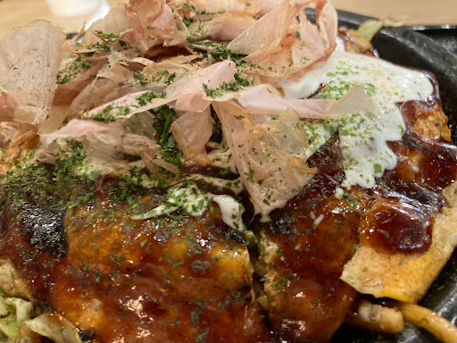 全てにおいて最悪でした。 土曜日の14:30頃訪問し、牛焼肉ガーリックペッパーライスを注文しました。 1組もお客さんが並んでおらず、すぐ呼ばれるかなと思いつつ席で待っていましたが、15分経っても呼ばれない…もうそろそろかもと思ってお店のすぐ近くに行ってみると、厨房の台の上には出来上がったお好み焼きやらペッパーライスが大量に置かれている。それなのにお客さんを呼ぶ気配もなければ、受け渡しの準備をする素ぶりもなし。さらに10分近くお店の近くで待っていましたが、いっこうに呼ばれる気配がないため、お店の方に「20分以上待っているんですけど、まだかかりますか?」と伺ったところ、まさかとは思っていたけれど、ずーっと厨房の台の上に置かれていた冷えたペッパーライスを持ってきました。さすがにその状況を見ていたので、「これずーっとそこに置きっぱなしだったやつですよね?」と聞くと、若い女の店員がバツが悪そうな顔をして、「温め直します。」とのこと。