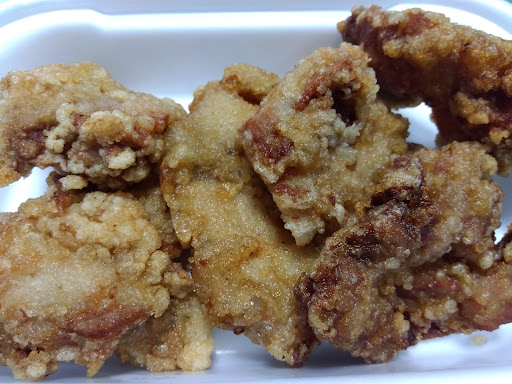 3回来店。お店の前の道路は何回か通ってて、仕事で今宿に行った時に初来店しました。お店入ってまず、揚げてある唐揚げがショーケースに並んでてセルフで取る珍しいシステムの唐揚げ専門店だなと思いました!後で看板見たら希望者は揚げたてを買えると書いてありました。イートインスペースもあって店内で食べるか持ち帰るかを選べました。 お弁当はご飯の量と無料で付いてくる鶏そぼろか明太子昆布を選んで伝えると、お弁当箱に盛られた状態で渡されセルフで好きな唐揚げを入れるシステムでした。 初来店時はにんにく醤油2個、塩1個、もも玉1個ご飯大盛りを鶏そぼろで持ち帰りで。お会計後に次回使えるサービス券をくれて内容が値引き、ご飯大盛り無料、出汁巻き卵1切れ無料の3種類から好きな物選べるサービス券でした!にんにく醤油の唐揚げは流石の一番人気で一番美味しかった!塩唐揚げは自分の好みと違って普通。もも玉はもも肉をかき揚げみたいに揚げてる料理で噛むと崩れていって柔らかい食感でなかなか美味しかった。 ご飯に乗ってた鶏そぼろはイマイチ。