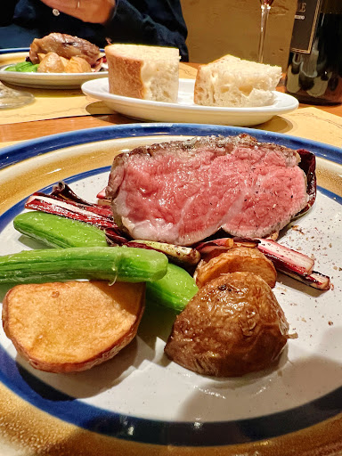 🍽️北海 黒牛の炭火焼 →やっぱり和牛は美味しいですね。全然脂っこさがなく、かといってじっくりと時間を掛けて焼きあがているので、お肉はとても柔らかい。塩と少しのコショウだけという味付けなので、お肉そのものの美味しさを堪能させていただきました。 付け合わせの野菜のグリルも非常にお肉の旨味を引き立てていて、美味しかったです。 🍷こちらには、少しボリューム感がありながら、香り豊かでタンニン抑え目のサンジョベーゼ100%の赤ワイン「Dei Vino Nobile di Montepulciano...