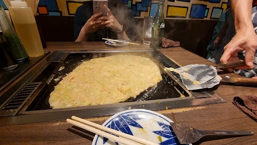 Read moreThis was our first time trying okonomiyaki. When we arrived at the restaurant, there were no staff at the entrance, and since we didn’t speak the Japanese, we didn’t know what to do. We opened the door to ask if there were seats, but we were told to wait outside. Luckily, two kind Japanese couples explained to us that we had to write our name and number of people on the list — we were really thankful for their help.