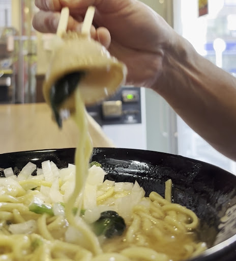 太麺も腹ペコな私にジャストフィット✨ そして、卓上にある無料の刻み玉ねぎ^^ シャキシャキの食感も良く、くどくなってきたタイミングで、口内をさっぱりとさせてくれます♪ 他、卓上のにんにく、豆板醤、しょうがで味変も楽し みました。(味変もナイスな味わいでした♪)