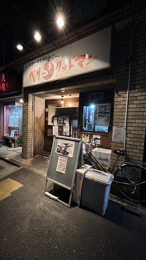 グッドマンステーキは、赤身のサイコロステーキ。ひとつひとつが大きいのですが、肉自体は柔らかく、とても食べやすいです。ソースは卓上に甘口タレ、辛口タレがあり、両方試しましたが、どちらも肉に良く合っていて美味しかったです。