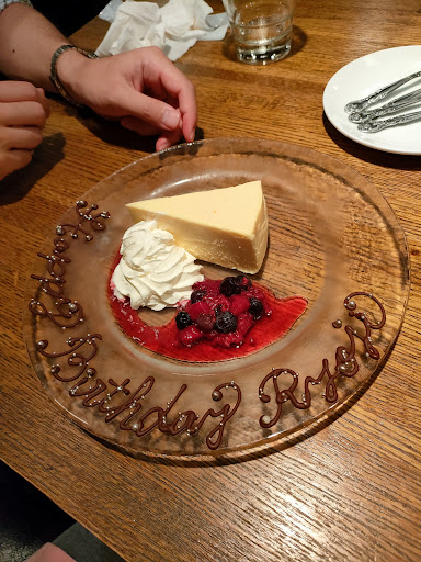 また、主人の誕生日祝いも兼ねていたので、デザートプレートをお願いしたところが、こちらの写真です。(ネタバレになっちゃうかな…) 今まで何度か字が書いてあるデザートプレート見てきましたが、こんなにきれいに装飾もしてあるのは初めて見ました! 持ってきてくださるときも、素敵な感じです…!敢えて伏せておきます。 前日にお願いしたにも関わらず、こんなにきれいに出して頂き、ありがとうございました。