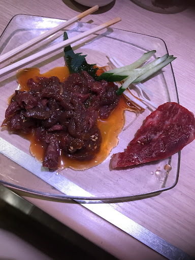 Read more食べ放題に釣られて入店したが食べ放題は2名からとの事で単品メニューで頼みました。 その日はキッチンスタッフは一名との事でしたが話し声が聞こえるし、無駄話してて品物出るのが遅い。 遅いから段々食欲はなくなる。 中落ちカルビを頼んだが単品値段に見合わないカス肉も乗せられていた。 肉寿司は良かったが塩かけすぎ。 九州にいたので馬刺しに目がなく生馬刺しを頼んだが、切り方も悪く不味かった。 馬刺しの盛皿が汚かった。 野菜盛り合わせは玉ねぎが薄いし、つまようじで刺しているから焼いている時につまようじは燃え尽きていた。 せめて竹串にしようよ。 網焼きなんだから。 石焼きビビンバは店員の子が混ぜてくれるから子供連れて行っても危なくないから良いかなと思ったが味が薄く不味かった。 駅近でこんな失敗する店があるとは思わなかった。 頼んだメニュー 生馬刺し、肉寿司、中落ちカルビ 上レバー、野菜盛り合わせ、ホタテバター、石焼きビビンバ、ビール 総額6149円 二度は行かない...
