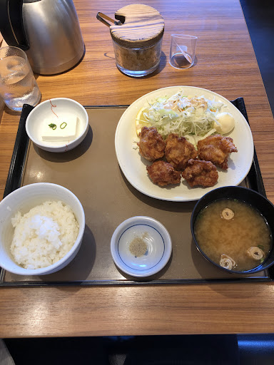やよい軒は、全国どこで食べても、おかずは可もなく不可もなく。食べ終えだあと、今日は何食べたっけ?みたいやな、印象になかなか残らないけど、それだけ日本の外食産業のレベルが高くなったのだろうと思います。唐揚げ定食を注文し、ちょっとだけ塩をかけて食べたいなあと思いました。お店の方に、私のわがままで、お塩をいただきましたが、店にないらしく、塩胡椒ならある、といただきました。笑。塩のない飲食店ってあるんですね。いただいておきながらすいません。。ただやはりなんといっても、お米だけは本当においしいですね。プレナスグループですから。おかわりいただかなくてよいのにおかわりしてしまいますね。食券機で万札で買った場合、「釣り札をお取りください。釣り札をお取りください。」と言う、早口言葉としつこさだけは、やよい軒としての文化ですね。釣り札を忘れたら大変ですからね。