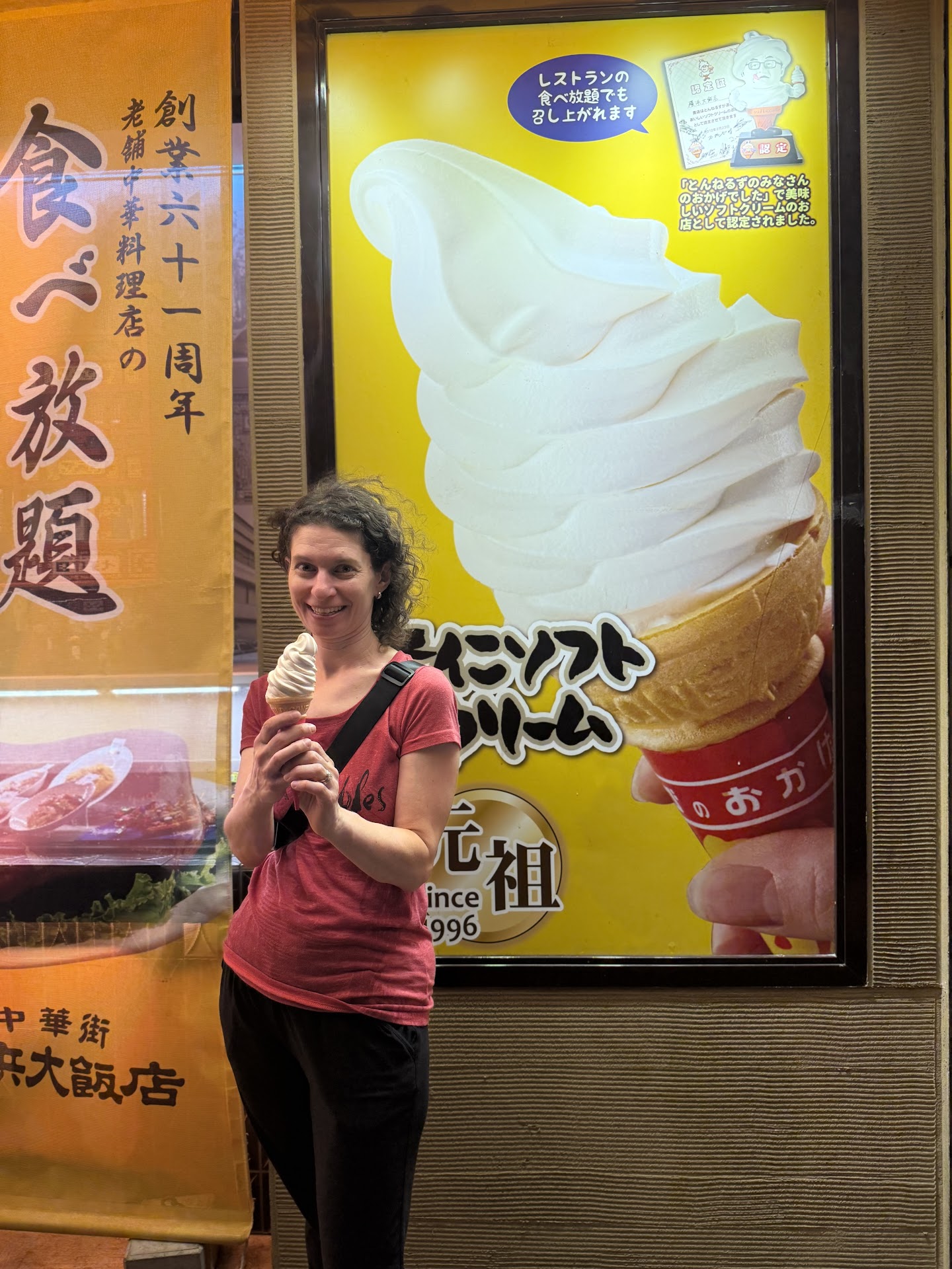 Read moreAll signs (in our life) pointed us to this spot to try the famous almond soft serve ice cream in the one night we had in town before boarding a cruise around Japan. We walked in with very little Japanese under our belt and the friendly staff looked at us inquisitively and all I could say (in English) was "ice cream' and they knew exactly what to do. We walked out a couple of minutes later with a soft serve almond ice cream cone and were quite happy with what we had done. Perfectly creamy with a unique almond flavor normally reserved for cookies in a Chinese restaurant. Well, it IS a Chinese restaurant, so that tracks. Glancing at the menu there are lots of options, though limited for vegetarians. The ice cream alone is worth stopping in for a unique and delicious treat if you're in this...