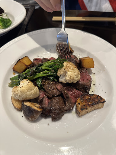 オーナーシェフは帝国ホテルのフレンチ、レ・セゾンとその後イタリアン部門で修行したのち、モスバーガーの子会社のランドマークのレストランで働いていたそう。そこで横浜に魅せられて、こちらに独立して店を構えて7年だそうです。特にステーキが柔らかい肉なのに重厚感があったのは何か帝国ホテルっぽいって思いました。 まずスターターは、カボチャのマリネとイベリコ豚のサラミ、アボカドのフライ スパイスマヨネーズ、焼きブロッコリー 明太子マヨネーズ、焼きナスのヴィネグレットと国産牛のピンチョス。インタビュー記事にカレーはソースとコメントしていて、そこもフレンチ風だなって思ったんですが、こちらのスターターもアボガドにはスパイスマヨネーズ、ブロッコリーには明太マヨネーズがホントぴったりです。よくあっててまさにソース選びが秀逸です。そしてメインはステーキ。ロースかなって思ったらハラミの近くのサガリという部分。柔らかいのにフレンチ風の重厚な味付けです。カレーも欧風カレーの嫌味が全くなくてまさに王道の美味しさでした。全ての料理で野菜が美味しいです。こちらはコロナ禍を生き抜いた本物ですが、仕入れ先が撤退したりして、今は横浜市場で厳選してるそうです。 以前北千住のカレーの名店のシェフと友人になってからカレーに力を入れるようになって、昼のランチに力を入れていて、オマールエビのカレーやカツカレー、チキンカレーもぜひ食べてほしいとのことでした。昼も夜も近くのみなさまぜひどうぞ。