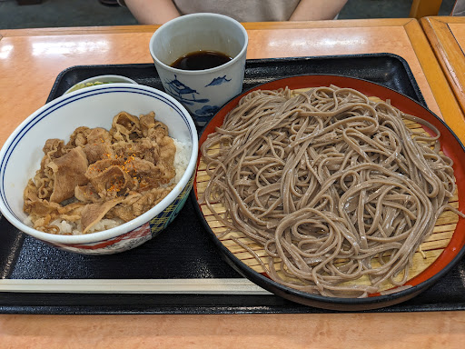 The food was decent. About what you should expect from a beef bowl shop plus soba for days. Not so conveniently located if you don't drive but clearly meant for local residents. It doesn't seat all that many people: maybe 20-30 people tops. But why would there be only one server for the whole place on a busy...