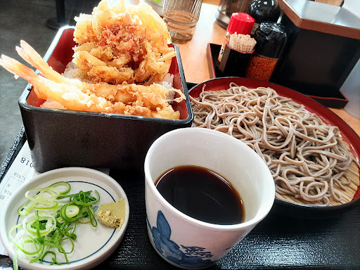 「海老とかき揚げ天重&そばセット」 十割そばのザルと天重のセットで926円(税込み1018円)でした。 量的な満足感や十割そば使用等からすると安いと思えましたね。良い。
