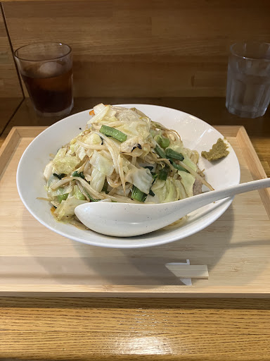 Read more噂のそらのきさんへ初訪問しました。 暑い中外で待っていると、早めに開けてくれました。 店内は、カウンターのみ四席の、縦長の造りで狭いお店です。 綺麗にされており、荷物を入れるカゴもありました。 さて、暑さに負けてしまい、汁なし野菜ラーメンをオーダー。 麺と野菜は大盛り無料というサービス。 この後もう一件予定があったので、麺のみ大盛りにしました。 中華鍋でシャキシャキに炒められた野菜と混ざった麺。 ラーメンというよりは、焼きそばに近い見た目。 柚子胡椒が添えられています。 よく混ぜてお召し上がりくださいとのこと。 混ぜて食べると、美味い! シャキシャキの野菜とチャンポン麺のような麺が合う! やはり、汁なしというより焼きそばという印象。 味はしっかりとしています。 卓上のお酸と胡椒がまたよく合います。 ますます汁のある野菜ラーメンが食べたくなりました。