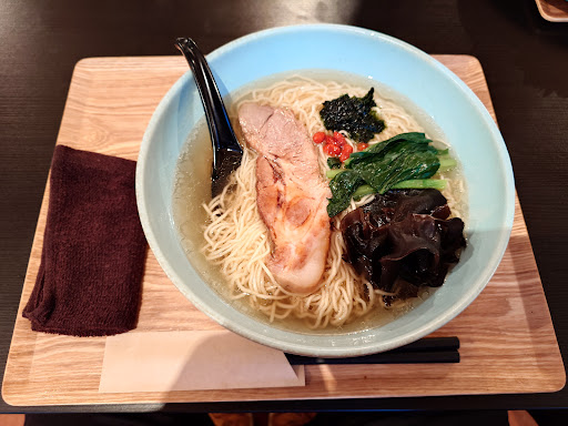 Read more以前に相鉄線の西横浜駅の近くにお店を出していた方が、引っ越してお店を出したようです。 友人と伺いました。 今回は、塩ラーメンと和出汁つけ麺(250g)を注文、フードコート等に良くある携帯型の呼び出し機を渡されて、待つ事約5分、ブザーが鳴り、自分で取りに行くシステムのようです。 塩ラーメンは、あっさりとしたスープでトッピングに生海苔が入っているせいか海の香りがして、食欲をそそる感じが良かったです。珍しいトッピングに木耳も乗っていました。食感が面白く良いと思います。チャーシューは以前と変わらず岩中豚を使用している為、非常に美味しいものでした。 和出汁つけ麺は、つけ麺のスタイルは変わっていませんが以前の麺よりも細い気がします。 トッピングは、つけ麺の時のもやしを中心とした野菜とチャーシューは塩ラーメンと同じく一枚乗っています。 麺の感想としては、以前のお店で出していた麺の方が若干太く美味しかったと思いました。 現金のみの決済です。 ま...