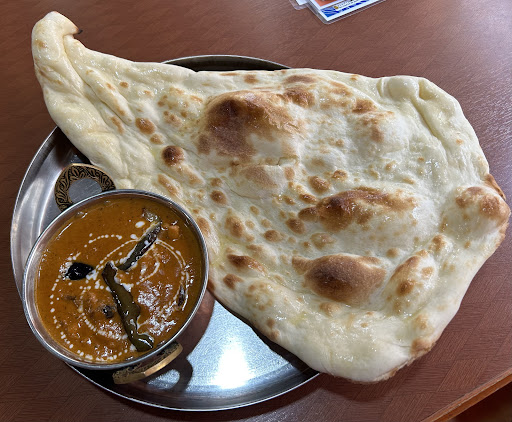I usually get the dinner set that comes with a salad, curry, naan, rice, papad, and soft drink... and that leaves me full. Try the coconut curry or butter chicken if you want something a little sweet and savory.