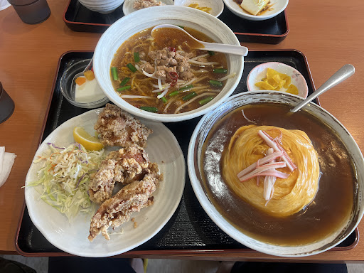 ふらっと寄ってみました。日曜日の昼過ぎパーキングにたくさんの車でしばらく待っていました。正直こんなところにこんなにお客さん入ってる?と半信半疑で入店すると、パーキング満車に納得のほぼ満員。すぐに席に案内されてメニューを見てびっくり! 組み合わせ次第では100通り以上あるのでは?という数の多さ。悩みに悩んで、台湾そばとナス味噌炒めのセットと坦々麺と青椒肉絲にセットにしました。 早くも遅くもない時間で料理がきて量の多さにびっくり。メニューに※ラーメンは通常の大きさです。とある通り、普通にラーメン。台湾ラーメンて何かな?と思ったけど普通の美味しい醤油ラーメンでした。麺も美味しいです。 ナスの肉味噌炒めは、ナスが素揚げしてあってよく肉味噌に絡みとても食べ応えがあって美味しかったです。 青椒肉絲もピーマンの歯応えがよく美味しいです。餃子も小籠包かと思うくらいの肉汁で、オススメです。 はらぺこだったので食べられましたが、量は少し多いので、土木関係ぽい方にはピッタリなようで、たくさん来ていました。 家族でももちろん1人でも行けそうなのでまた行きたいと思います♪ ランチはコレで1人...