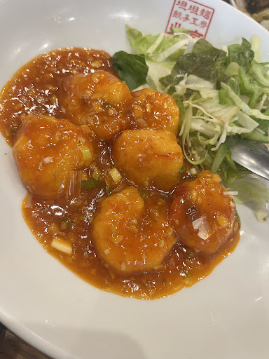 エビチリはすごいニンニクがたっぷり。程よい辛さ、とろみで美味しい♡エビチリにも野菜が添えてあるので、お野菜がたっぷり摂れるのも嬉しい⭐︎ものすごいお腹がいっぱいになりました(o^^o)