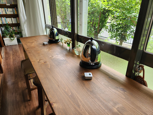 昭和初期の家を手入れして テーブル2席と窓辺側の長テーブルの店内。中国茶のみのメニュー展開。浅い発酵から紅茶クラスまで 茶葉を選ぶのが難儀であり オーナーに相談しながらの選択が た♥の♥し♥み♥ 私は名前が気に入った老白茶。味はウーロン茶。連れは金萱茶。こちらは丸まった小さな茶葉がゆっくり開いてモコモコのワカメのような姿に変身が愉快。味もエキゾチックで薄い黄金色。一緒に出て来たお茶うけも向日葵の種等種類が多く大満足。 作法も一杯目は見て 2杯目3杯目と楽しみは続く…料金は2人で約2000円